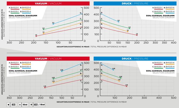 FréquenceSurpression limite (mbar)Dépression, vide limite (mbar)Tension alimentation en volt (V)Courant en ampère (A)Puissance moteur (kW) Bruit (dB A)*PoidsIndice Energétique